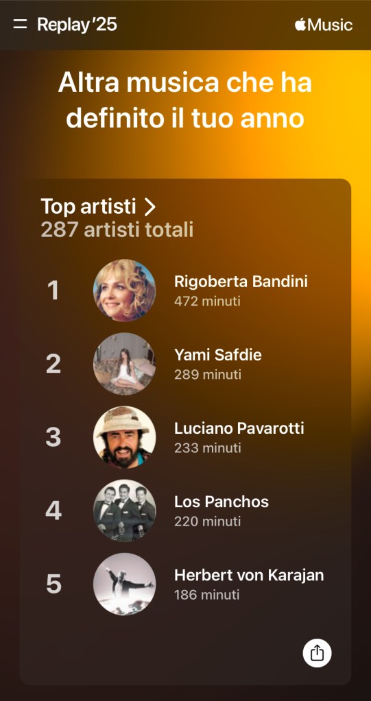 Según el Wrapped 2025 de Spotify, mis gustos musicales revelan que desciendo en grado uno y por línea directa de Matusalén, el abuelo de Noé. Puede que Spoti tenga razón, pero no reniego de ninguno de ellos a pesar de que supuestamente dupliquen o tripliquen mi edad.