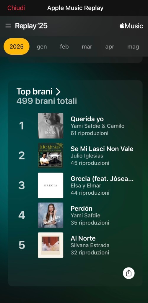 La lectura del libro “El español que enamoró al mundo”, me llevó a tener mis escarceos musicales con Julio Iglesias -precisamente en el mes del mismo nombre-, aunque en mi casa siempre hemos sido más de Serrat. Pero Joan Manuel no cantó nunca en italiano -al menos que yo sepa- y Julio por el contrario tiene singles maravillosos como “Se mi lasci non vale”, que me vino al pelo para mi último verano en las costas de Latina y, sobre todo, me acompañó mientras hacía mi equipaje (ah, “la valigia sul letto, quella di un lungo viaggio”) antes de volver a la madre patria. Retorno que estuvo acompañado en agosto de una playlist a la que puse por título “Despedida” y que supuso un harakiri sentimental sin paliativos, con clásicos como “Arrivederci Roma”.